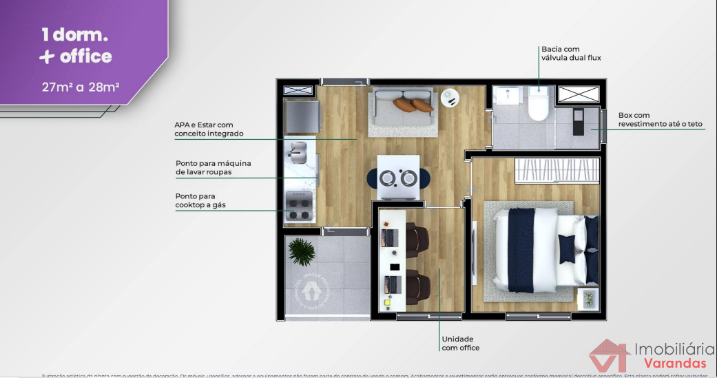 ✅ 1 dorm. + office - 27m² a 28m²